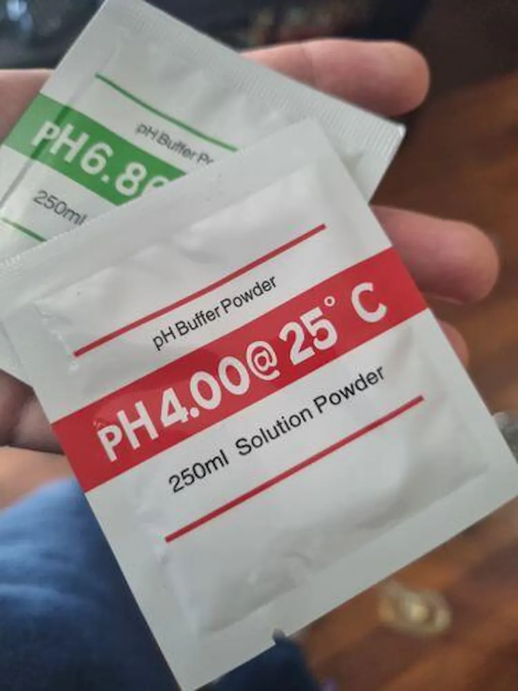 Dos soluciones para medidor Ph 4.01 y 6.86. Con estas soluciones podemos calibrar nuestro medidor de PH y así aseguramos una correcta medición.